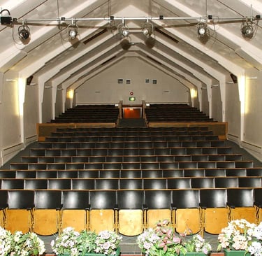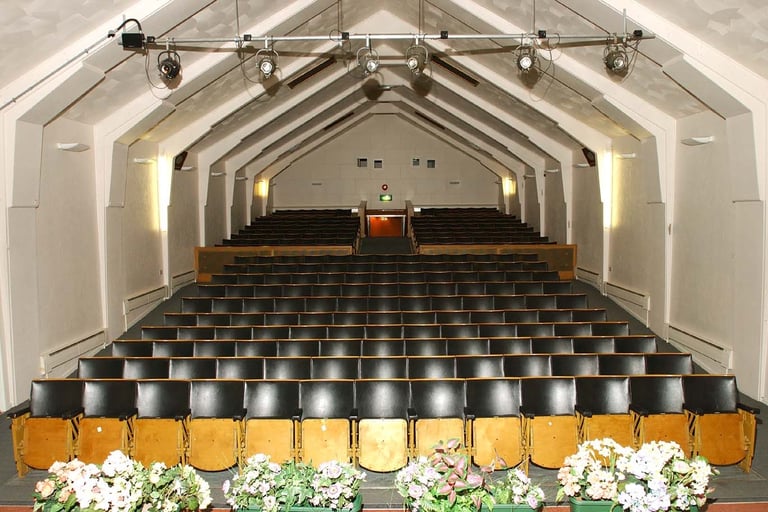 Hidden away inside the AWE Recreational society is a beautiful 272 theatre. First constructed into a dancing hall during the Second World War, it opened as the William Penney Lecture Theatre on the 14th February 1966. And now, sixty years later, Mayday Productions is bringing life back into this theatre, with our 2026 Summer Season we are proud to introduce a new generation of artists and creatives at our new home: The William Penney Theatre.